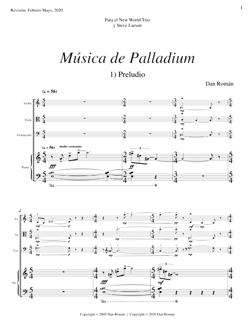 Música de Palladiumviolín, viola, violoncello y piano 2005 rev. 2020 12:00 |