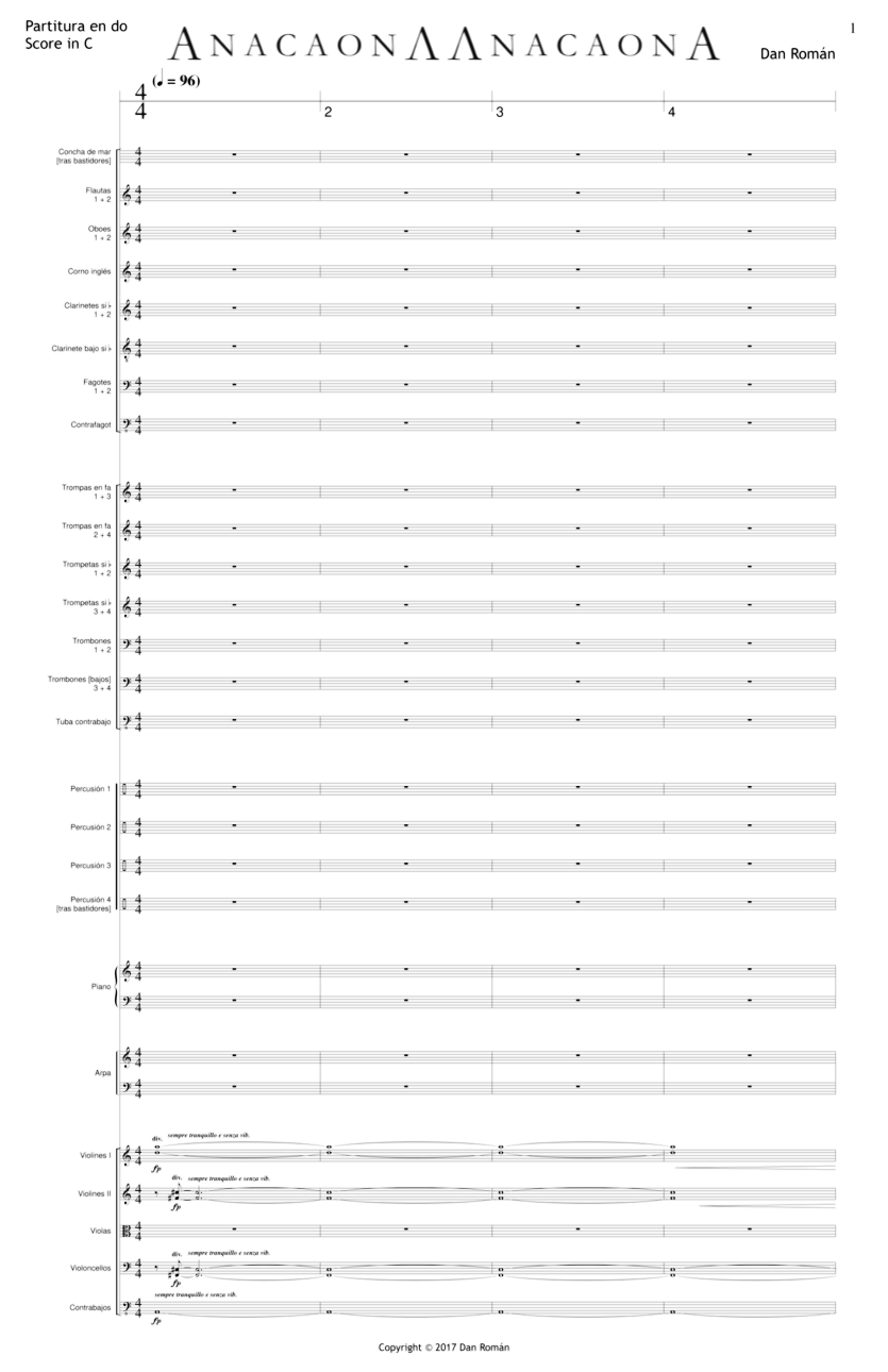 This composition weaves together various popular songs that have paid tribute to Anacaona, merging them into a single motif. That motif expands to fill the first half of the piece (120 measures) and returns in retrograde in the second half. Simultaneously, it ascends gradually from octave to octave, symbolizing Anacaona’s spiritual journey. Twice, her ascent is interrupted by moments of brutal injustice, yet the music ultimately rises into the realms of air and stars, where a distant call of her name can be heard, perhaps from her ancestral spirits, perhaps from future generations.