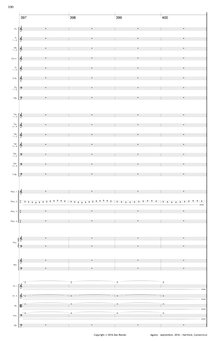 I made a conscious effort to avoid rhythmic or stylistic clichés that might imitate a Taíno musical style. Instead, any use of nontraditional instruments, such as wooden wind chimes or a seashell, is intended only to represent a particular Taíno story or character.