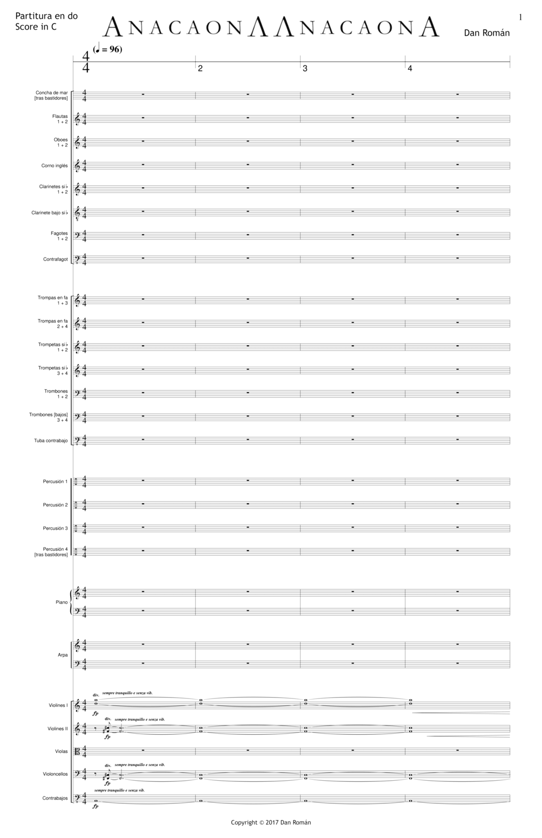 This composition weaves together various popular songs that have paid tribute to Anacaona, merging them into a single motif. That motif expands to fill the first half of the piece (120 measures) and returns in retrograde in the second half. Simultaneously, it ascends gradually from octave to octave, symbolizing Anacaona’s spiritual journey. Twice, her ascent is interrupted by moments of brutal injustice, yet the music ultimately rises into the realms of air and stars, where a distant call of her name can be heard, perhaps from her ancestral spirits, perhaps from future generations.