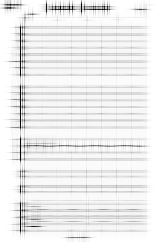 The three symphonic poems that make up RVLXNS are all palindromes, each lasting exactly 10 minutes (600 seconds), with their midpoints located precisely at the 5-minute (300-second) mark. The first and last poems serve as mirror reflections of each other, while the central poem functions as a plateau, creating an overarching palindrome across the three works.